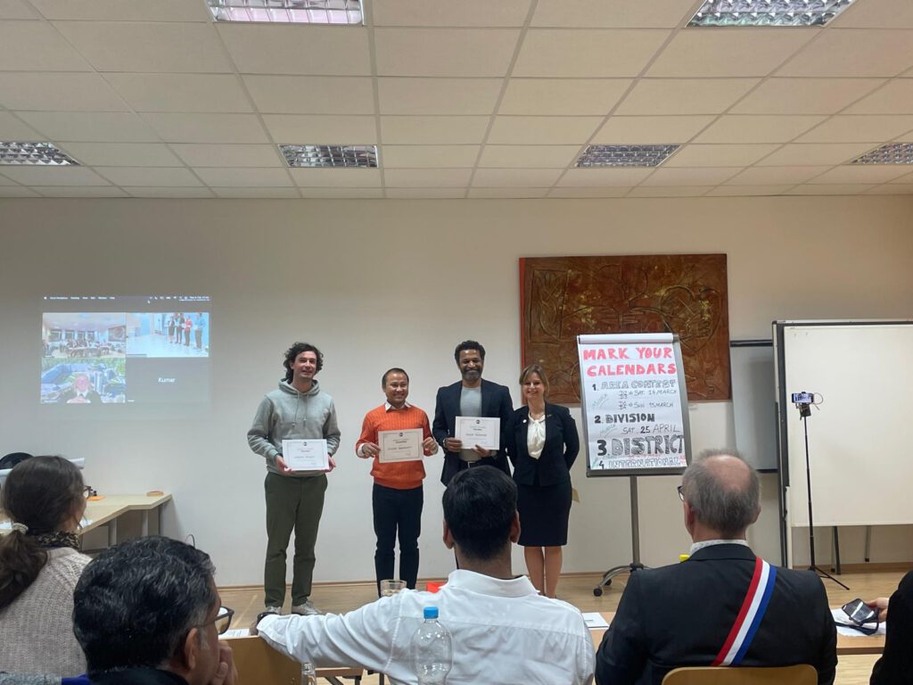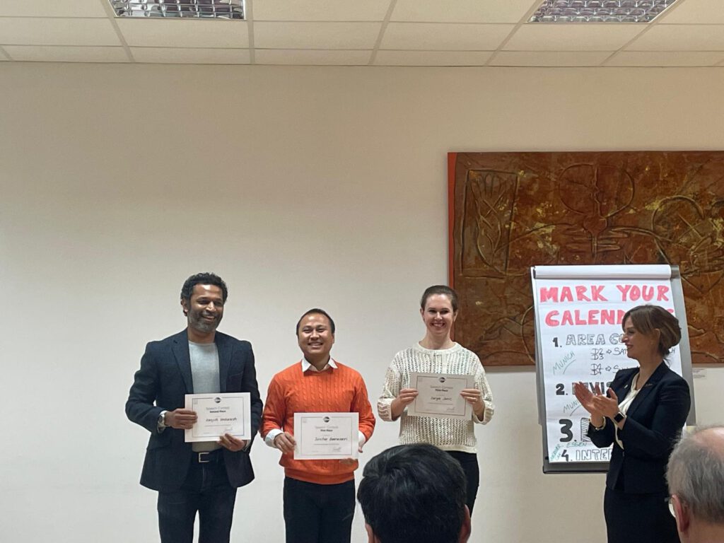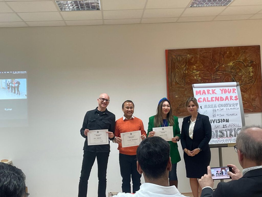 Winners of International Speech Contest (Sirichai Bannasarn), Evaluation Contest (Monica Cheung) and Table Topics Contest (Ranjith Venkatesh)